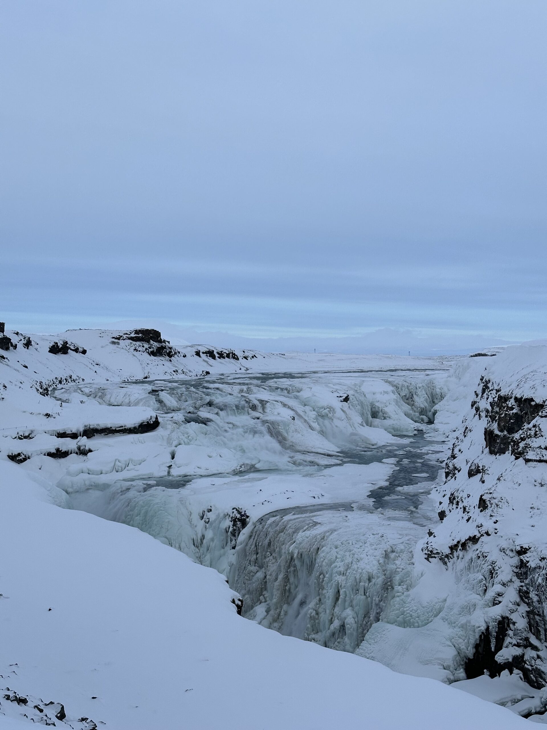 One of Iceland’s most famous waterfalls, Gullfoss cascades in two dramatic tiers with a total drop of 32 meters (105 feet), fed by meltwater from the Langjökull glacier. During winter, parts of the waterfall may freeze, creating a spectacular ice formation, while on sunny days, a rainbow often forms in the mist, enhancing its natural beauty. Multiple viewpoints allow visitors to experience the sheer force and grandeur of the waterfall.
