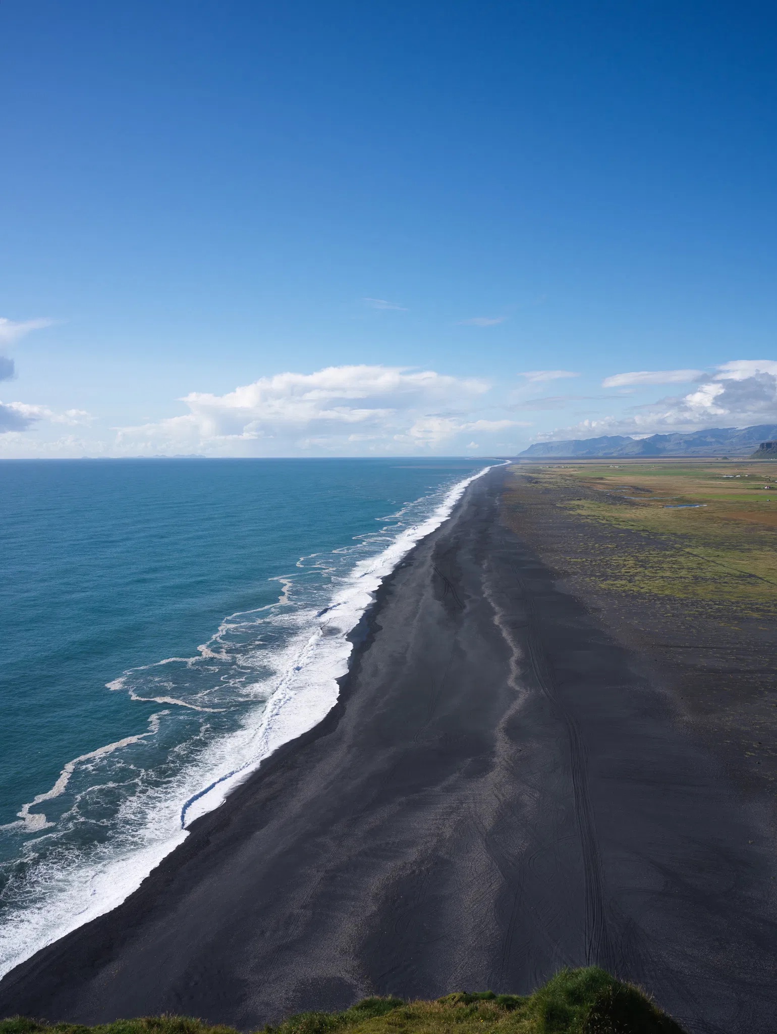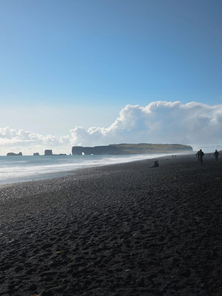 Reynisfjara is Iceland’s most famous black sand beach, known for its towering basalt columns, powerful Atlantic waves, and the iconic Reynisdrangar sea stacks. The volcanic sand, created by eroded lava rock, forms a striking contrast against the white crashing waves. Visitors must remain cautious, as sneaker waves can be extremely dangerous.